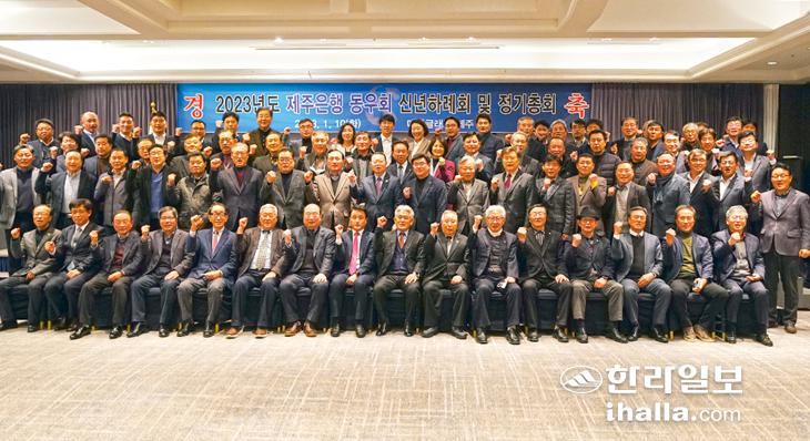 제주은행 동우회(회장 강근보)는 지난 10일 메종글래드 제주호텔에서 박우혁 은행장, 문종일 노동조합 위원장을 비롯해 임원진, 부점장들과 회원 100여명이 참석한 가운데 '2023년도 신년하례회 및 정기총회'를 개최했다.