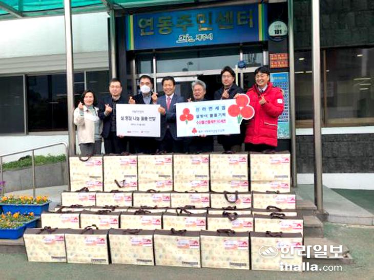 신라면세점 제주점(점장 윤재필)은 지난 12일 제주시 연동주민센터를 방문해 저소득 가구를 위한 제주수산물 50세트를 기탁했다. 같은 날 호텔 더원(대표 서정림)도 연동주민센터를 방문해 성금 200만원을 사회복지공동모금회(회장 강지언)에 기탁했다.
