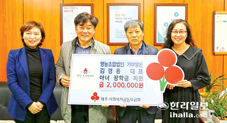 영농조합법인 거부양돈 김경용 대표는 지난 12일 위미중학교(교장 김태우)를 방문해 어려운 학생들을 위해 사용해달라며 제주사회복지공동모금회(회장 강지언)와 함께하는 아너 소사이어티 장학금 200만원을 전달했다.