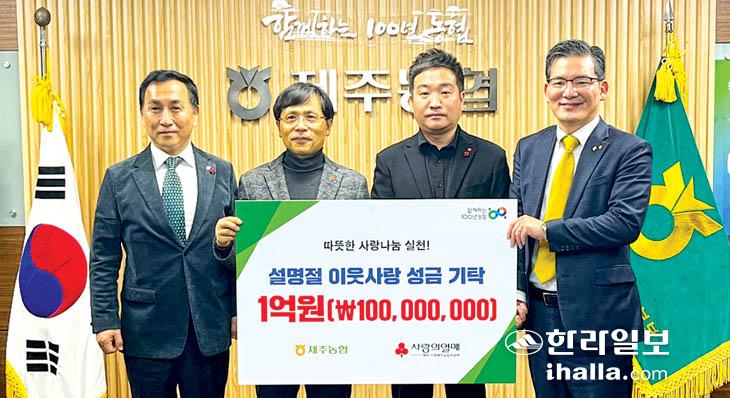 제주농협은 계묘년 설맞이 사랑 나눔 활동의 일환으로 지난 12일 제주사회복지공동모금회(회장 강지언)에 성금 1억원을 기탁했다.