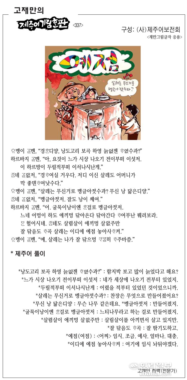 [고재만의 제주어기림혼판] 제주어 풀이(337)