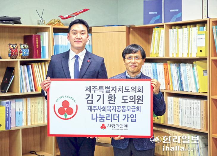 김기환 제주특별자치도의회 의원(제주시 이도2동 갑)은 지난 17일 의원실에서 제주사회복지공동모금회(회장 강지언)가 진행하는 '제주 나눔리더'에 가입하고 지역사회 나눔문화 확산에 앞장서기로 했다.