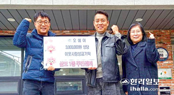 (주)오쉐어는 지난 16일 제주시 삼도1동 관내 어려운 이웃을 위해 300만원을 기탁했다. 이번 성금은 한부모가정, 소년소녀가정 등에 전달될 예정이다.