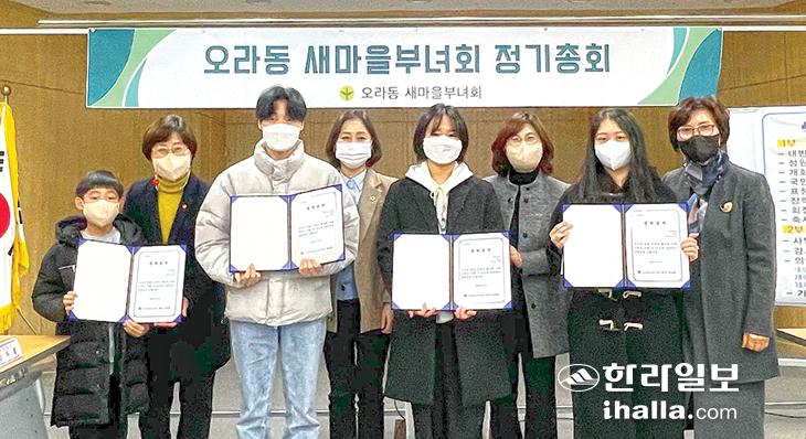 제주시 오라동새마을부녀회(부녀회장 박금환)는 지난 17일 오라동 지역 내 청소년 4명에게 장학금 100만원을 전달했다.