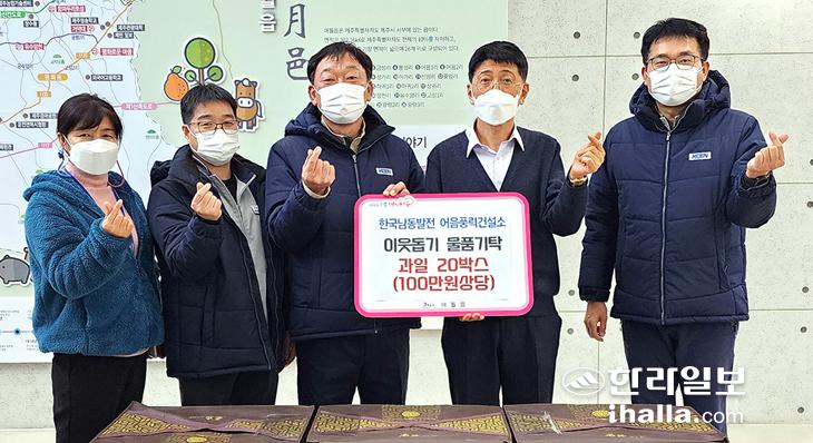 한국남동발전 어음풍력건설소(소장 박만재)는 지난 17일 설을 맞아 제주시 애월읍(읍장 김기완)에 관내 어려운 이웃에게 전달해 달라며 사과, 배 등 과일 20박스(100만원 상당)를 기탁했다.