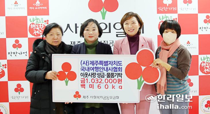 (사)제주특별자치도국내여행안내사협회(회장 김향선)는 지난 18일 제주사회복지공동모금회(회장 강지언)에 성금 103만2000원과 백미 60㎏을 기탁했다. 이번 성금은 제주도국내여행안내사협회가 떡국 판매 행사를 통해 마련했다.