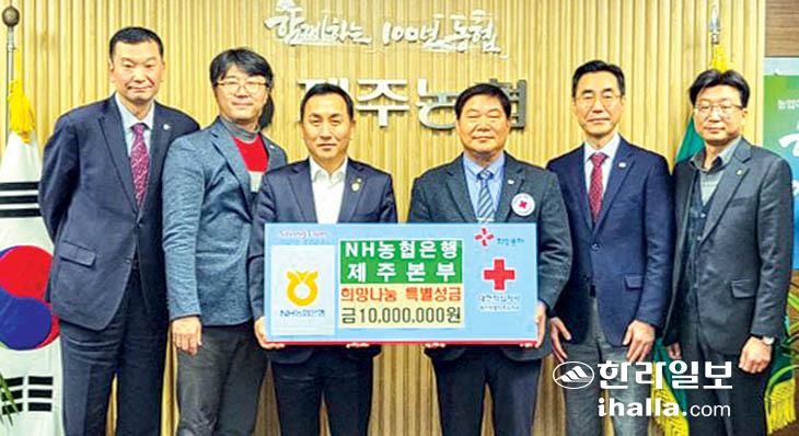 NH농협은행제주본부(본부장 고우일)는 지난 19일 대한적십자사제주특별자치도지사(회장 정태근)에 소외된 이웃을 위한 희망나눔 특별성금 1000만원을 전달했다.