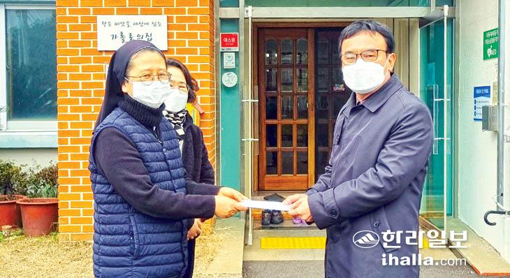 제주국제교육원(원장 정성중)은 지난 20일 제주시 화북2동에 있는 가롤로의집을 방문해 시설 관계자와 입소자들을 격려하고 전 직원이 자율적으로 모금한 설맞이 위문금을 전달했다.