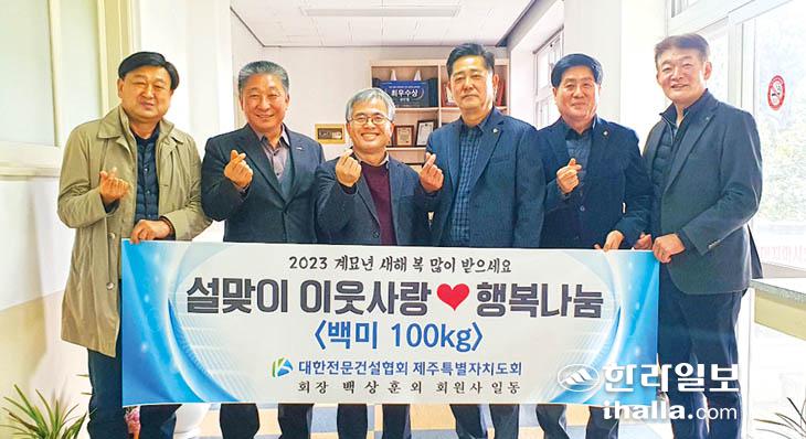 대한전문건설협회 제주특별자치도회(회장 백상훈)는 지난 25일 성산읍주민센터(읍장 현동식)를 방문해 지역 내 도움이 필요한 어르신들을 위해 써달라며 240만원 상당의 이웃 사랑 쌀 100포를 기탁했다.