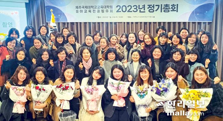 제주국제대학교 교육대학원 유아교육전공원우회(회장 변정심)는 지난 26일 제주국제대학교 교육대학원 교수 및 50여 명 회원이 참석한 가운데 2023년 정기총회를 개최했다. 이날 신년하례 및 총 10명의 석사학위 수여자를 축하했고 제주국제대학교에 발전기금 100만원을 기탁했다.