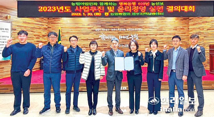 농림수산업자신용보증기금(농신보) 관리기관인 농협중앙회 제주지역보증센터(센터장 변영종)는 30일 농협 제주본부 대회의실에서 전직원이 참석해 올해 보증사업 추진을 위한 '사업 추진 및 윤리경영 실천 결의대회'를 열고 영농(어)자금 조달에 어려움을 겪고 있는 농림어업인에 대한 적기보증 지원에 적극 나서기로 결의했다.