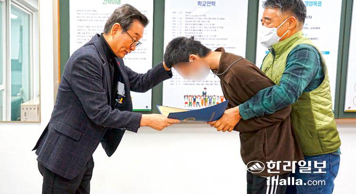 제주영송학교(교장 백차기)는 지난달 30일 교장실에서 2022학년도 동아꿈나무재단 후원 특수학교 재학생 장학금 대상 학생에게 장학금을 전달했다.