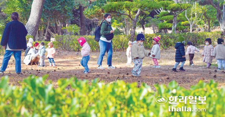기온이 오르며 맑은 날씨를 보인 1일 제주시 사라봉공원에 소풍 나온 어린이들이 즐거운 시간을 보내고 있다. 이상국기자