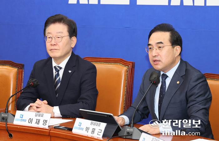 더불어민주당 박홍근 원내대표가 6일 국회에서 열린 최고위원회의에서 발언하고 있다. 연합뉴스