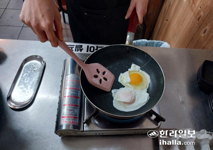 청년밥상문간 제주점에는 계란프라이 셀프 코너도 있다. 가격은 500원이다.