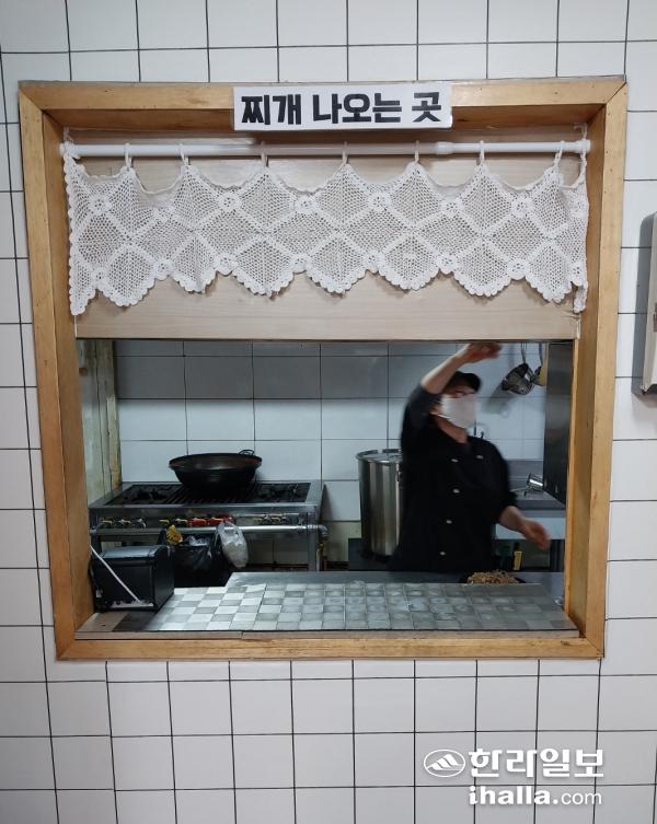 식당의 김치찌개 나오는 곳. 직원이 점장을 포함해 두 명인 청년밥상문간 제주점에선 '셀프 이용'이 원칙이다. 찌개가 나오면 이곳에서 받아 가면 된다.
