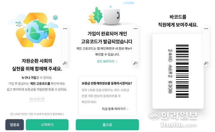 자원순환보증금 앱에 회원가입을 하면 개인 고유코드가 발급된다. 이 바코드는 매장과 공공반납처에 있는 무인간이회수기에서 일회용컵을 반납할 때 쓰인다.