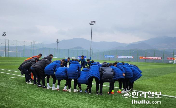 15일 경남 양산시 천성산체육공원에서 열린 제54회 부산MBC 전국고교축구대회 예선 1조 2차전 대기고와 서울 광진 U18과의 경기에 앞서 대기고 선수들이 파이팅을 다짐하고 있다.