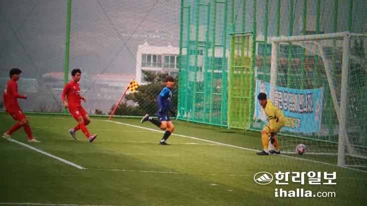 15일 경남 양산시 천성산체육공원에서 열린 제54회 부산MBC 전국고교축구대회 예선 1조 2차전 대기고와 서울 광진 U18과의 경기에서 대기고가 골을 성공시키고 있다.