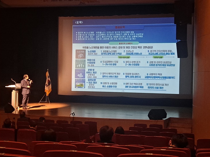 용역진이 '버스 준공영제 성과평가 및 개선방안 용역' 결과에 대해 설명하고 있다.