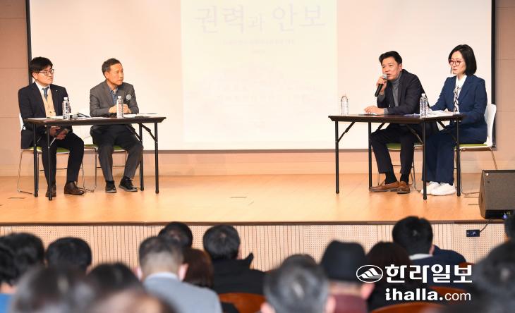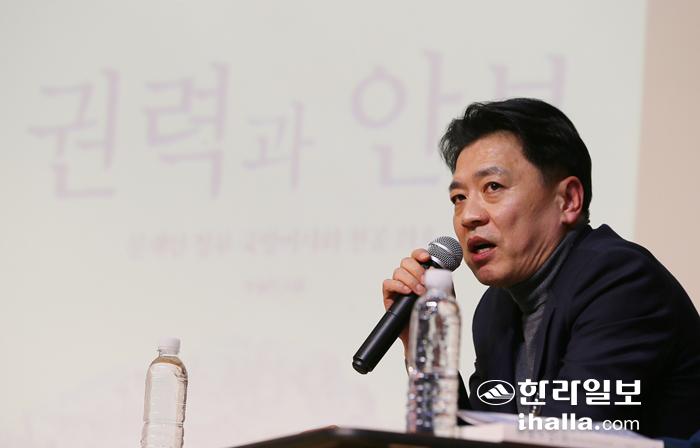 19일 오후 제주시 김만덕기념관에서 부승찬 전 국방부 대변인이 자신의 신간 '권력과 안보-문재인 정부 국방비사와 천공 의혹' 북콘서트를 진행하고 있다.