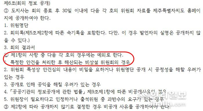[한라일보] 도민 알권리 충족을 위해 제정한 조례가 오히려 정보공개를 방해하고 차단하고 있어 논란이 되고 있다.