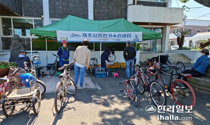 지난해 찾아가는 자전거 이동 수리센터 운영 장면. 제주시 제공