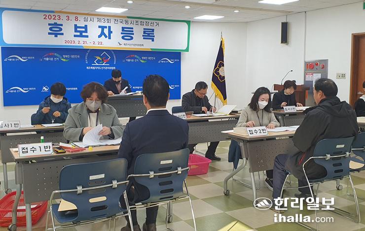 3월 8일 치러질 제3회 전국동시조합장선거를 앞두고 후보자 등록 첫날인 21일 제주시와 서귀포시 선거관리위원회에서 등록 신청이 이뤄지고 있다. 등록 마감은 22일 오후 6시까지다. 이상국기자