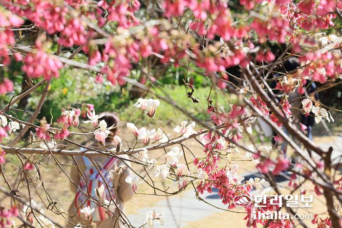 21일 오전 제주 서귀포시 서귀동 이중섭미술관 앞 공원에 목련과 매화가 활짝 피어 방문객의 눈길을 사로잡고 있다. 연합뉴스