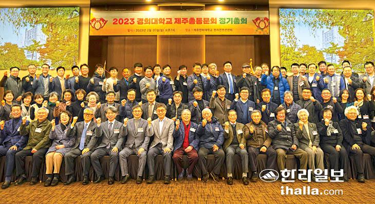 경희대 제주총동문회(회장 김태윤)는 지난 20일 한라대컨벤션홀에서 한균태 경희대 총장을 비롯한 120여 명의 동문이 참석한 가운데 '2023년 정기총회'를 개최했다.