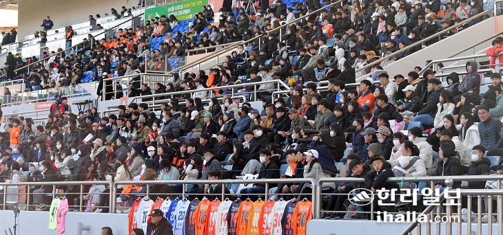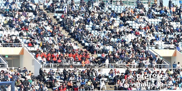 26일 제주월드컵경기장에서 열린 제주유나이티드와 수원FC의 하나원큐 K리그1 2023 1라운드는 2017년 전면유료화 이후 최다 관중인 8362명이 경기장을 찾았다. 이상국 기자