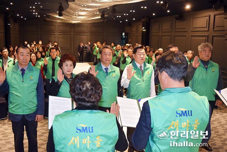 제주특별자치도새마을회(회장 이기창)는 지난달 27일 파라다이스회관에서 도·시단체장, 이사, 43개 읍면동새마을협의회장 및 새마을부녀회장 등 120명이 참석한 가운데 2040 플라스틱 제로섬 제주만들기 선포식을 개최했다.