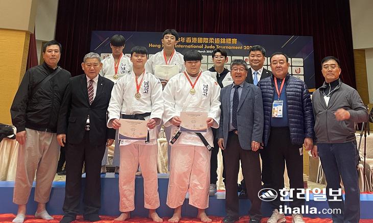 아래 왼쪽부터 문경철 제주도청감독, 문원배 대한유도회심의위원장, 김세림, 이현지, 강만순 제주유도회 회장, 김희철 도유도회 부회장, 유국상 대한유도회 부회장, 위 왼쪽 오상우, 고지운, 홍다미 동남초지도자, 한순남 대한유도회상임심판.