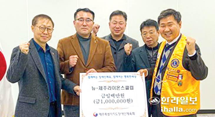 뉴제주라이온스클럽(회장 문경남)은 지난 2일 제주특별자치도장애인체육회를 방문해 선수단을 위한 격려금 100만원을 기탁했다.