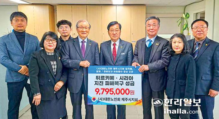 (사)대한노인회 제주시지회(회장 문준식)는 13일 지회 사무실에서 튀르키예·시리아 지진 피해 돕기 성금 979만5000원을 대한노인회 중앙회에 전달했다.