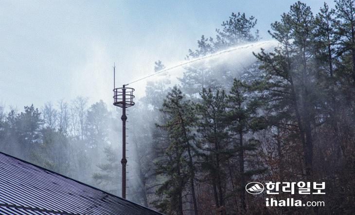 제주시는 절물자연휴양림 내 숙박 시설인 숲속의 집 주변에 화재 발생 시 초동 대처 등을 위해 수관수막 타워를 설치하기로 했다. 제주시 제공