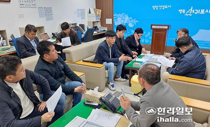 송산서귀마을회 비상대책위원회가 20일 서귀포시청 기자실에서 기자회견을 갖고 "지난 17일 마을총회에서 이뤄진 임원선출은 날치기 통과"라며 법적 대응하겠다는 입장을 밝혔다. 백금탁기자