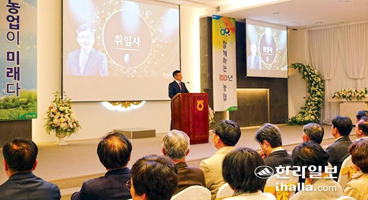 서귀포농협은 21일 도의원, 농협중앙회 제주본부장 등 250여명이 참석한 가운데 하나로마트 웨딩홀에서 서귀포농협 제16대 정기철 조합장 취임식을 실시했다.