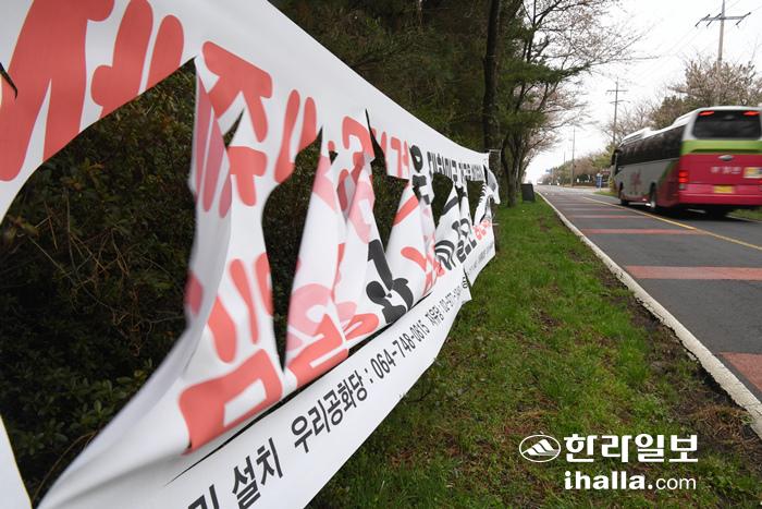 훼손된 '제주 4·3폄훼' 현수막