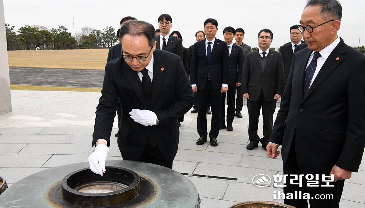 이 총장은 강종헌 제주4·3사건 직권재심 권고 합동수행단장과 고희범 제주4·3평화재단 이사장, 김창범 제주4·3유족회장 등과 함께 제주4·3 평화공원을 방문해 참배했다.