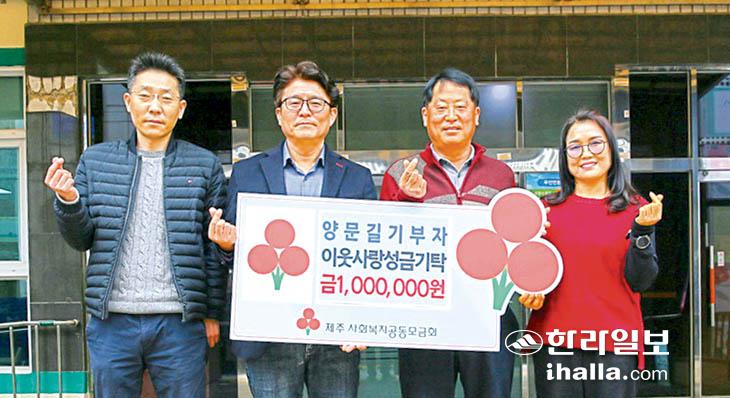 양문길 전 이도2동주민자치위원은 지난 24일 제주시 이도2동주민센터(동장 한재영)를 방문해 이웃사랑 성금 100만원을 제주사회복지공동모금회(회장 강지언)에 기탁했다.