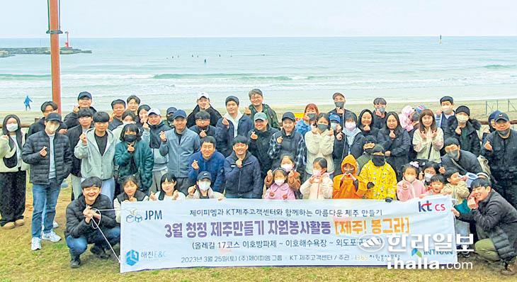 KT 제주고객센터(총괄 센터장 양태혁)와 (주)제이피엠(대표 강미란)은 지난 25일 제주자원봉사센터에서 주관하는 청정 제주 만들기 제주 봉그라! 활동에 참여, 이호해수욕장 일대 플로깅 캠페인을 실시했다.