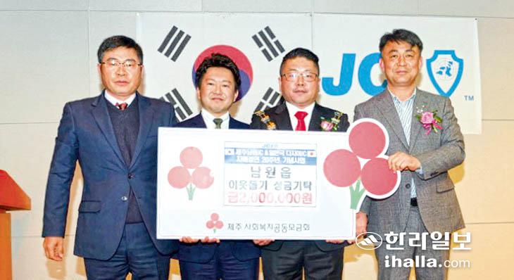 제주남원청년회의소의 자매단체인 일본 다지미 청년회의소가 지난 25일 열린 제주남원청년회의소 창립 제42주년 기념식에서 성금 200만원을 남원읍지역사회보장협의체(공동위원장 현은정, 김기창)에 기탁했다.