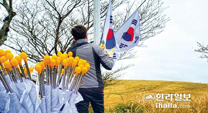 제주시 봉개동(동장 김문규)과 봉개동연합청년회(회장 주광식)는 제75주년 4·3희생자 추념식을 앞두고 지난 26일 회원 15명이 참여해 제주4·3평화공원으로 향하는 명림로 구간에 가로기를 게양했다.