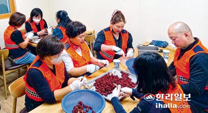 제주소방서 외도남·여의용소방대(대장 김동주, 김정미)는 지난 26일 성지요양원을 방문해 봉사활동을 실시했다. 외도 남녀의용소방대는 앞으로도 매월 마지막주 일요일 꾸준히 봉사활동을 이어갈 예정이다.