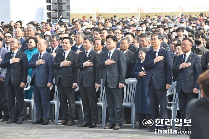 3일 열린 제75주년 제주4·3희생자 추념식에 참석한 내빈들. 제주도사진기자회