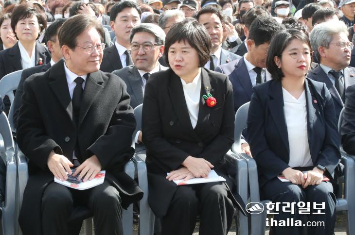 정치권에서는 이재명 당 대표를 비롯한 더불어민주당 지도부와 정의당 이정미 대표가 참석했다.