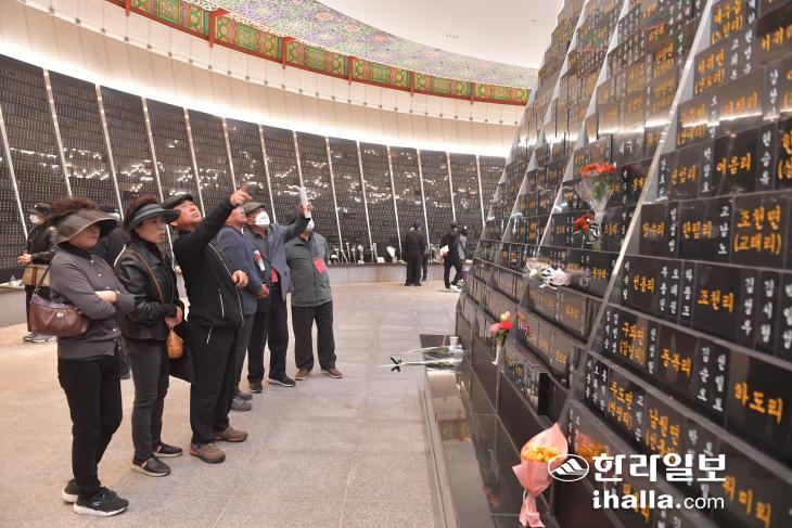 4일 제75주년 4·3추념식이 열린 제주4·3평화공원을 찾은 4·3희생자 유족들. 제주도사진기자회