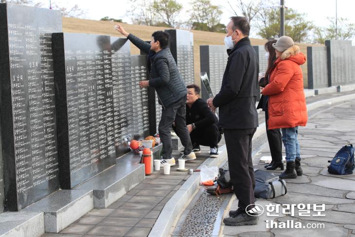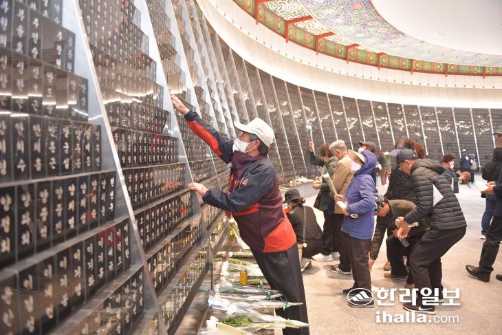 제주4·3평화공원 내 위령탑과 행방불명인 표석, 각명비에도 각기 사연을 지닌 희생자 유족과 생존자들이 가족의 이름을 어루만지며 제를 올렸다. 특히 코로나19 사회적 거리두기가 해제됨에 따라 표석에 귤과 과자, 물, 막걸리 등을 두고 제를 올리기도 했다.
