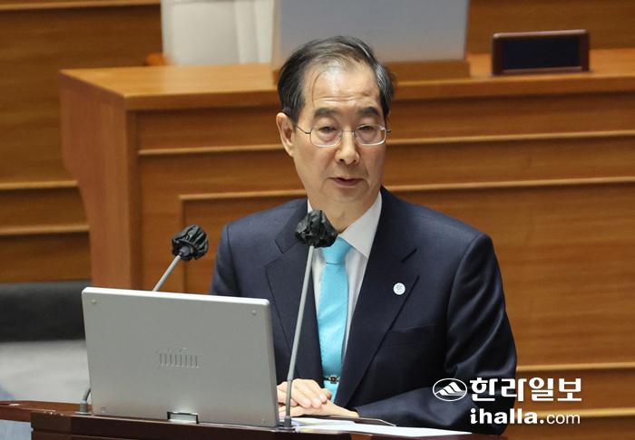 3일 국회 대정부 질문에 답변하는 한덕수 국무총리. 연합뉴스